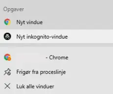Åbn Chrome i et “Nyt inkognito-vindue”. Dette gør du ved at højreklikke på Google Chrome ikonet på dit skrivebord eller i skrivebordslinjen. Herefter vælger du Inkognito.