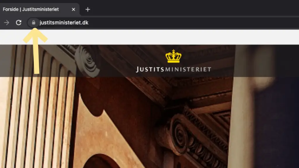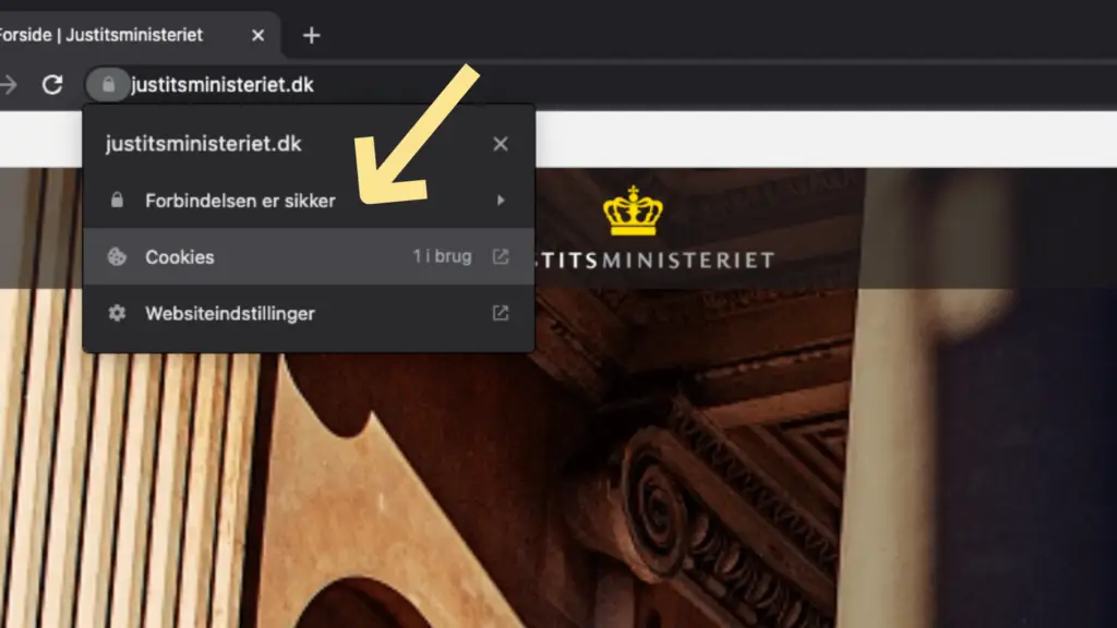 Nu har du åbnet browseren, og i toppen af siden til venstre for URL’en finder du en hængelås, som du skal klikke på.