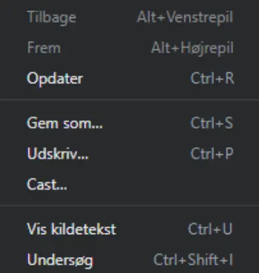 Højre klik på hjemmesiden og vælg “undersøg”.