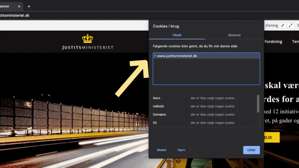 Herefter kan du se hvilke cookies, som din browser bruger i øjeblikket.